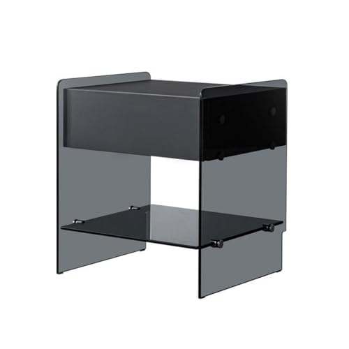 Modern Transparent Glass Bedside Table Light Luxury Bedroom Furniture Metal Bedside Table Home Storage Cabinet (Color : Black) (Black)