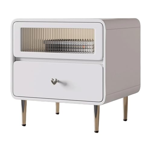 PUFAHAU Elegant bedside table Simple Nightstand Wooden Creativity End Tables Tempered Glass Bedside Table Love Handle Bedside Cabinet 2 Drawers Side Table Side Table (White 50cm/20)