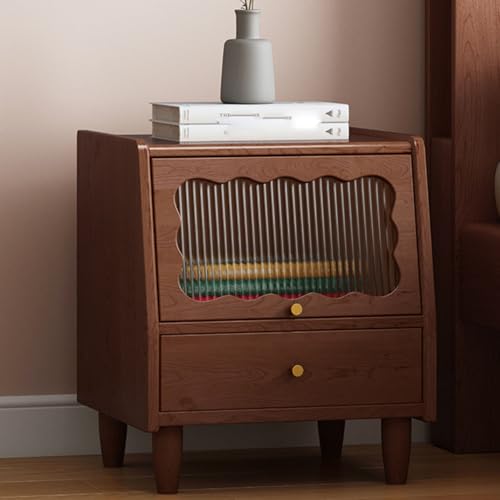 WWERTYY Solid Wood Nightstand with Glass Top Vintage Bedside Table with Storage Shelf for Bedroom Modern Walnut Finish Decorative Furniture for Living Room