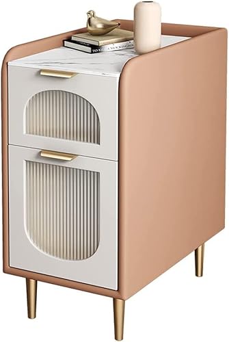 PUFAHAU Elegant bedside table Simple Nightstand Wooden Creativity End Tables Tempered Glass Bedside Table Love Handle Bedside Cabinet 2 Drawers Side Table Side Table (Gray Pink 50cm/20)
