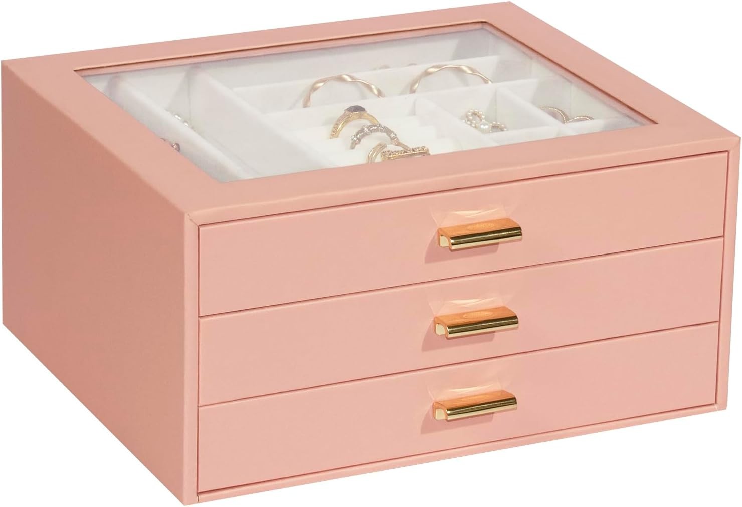 KILHS Jewellery Box with Glass Lid, Jewellery Box with 3 Levels, for Earrings,