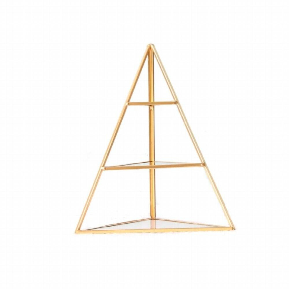 Jkjlorey Glass Jewelry Box Golden Geometric Decorative Box Geometric Glass Pyramid Ring Holders for Wedding Birthday Gift L