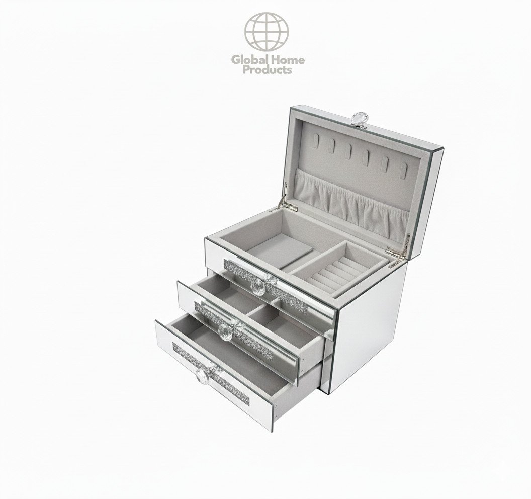 SERENA'S ? Silver Crushed Diamante Mirrored Glass Jewellery Box Makeup Organiser Storage Cosmetic Storage Box, Organizer Skin Care Products, Cosmetic