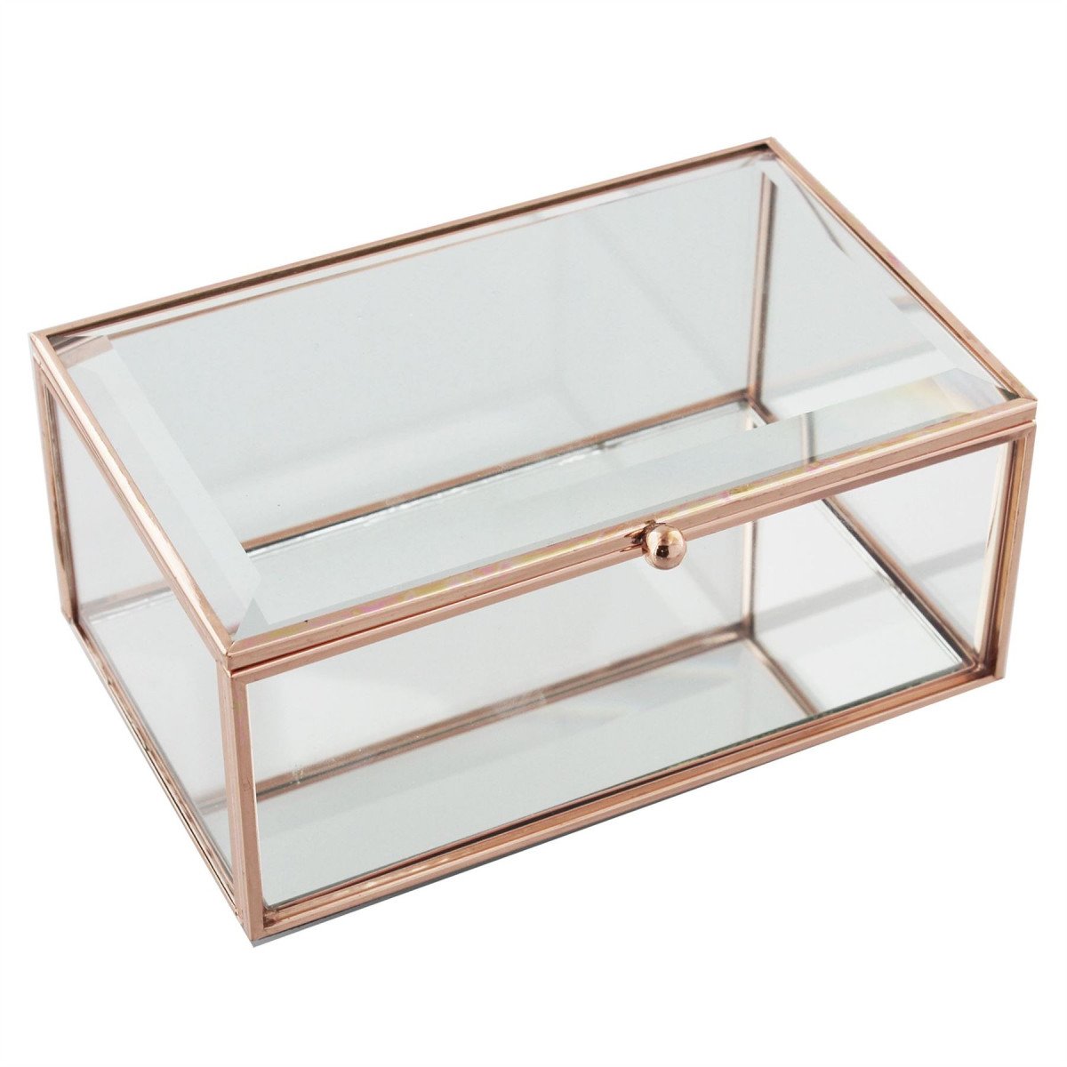 Glass Jewellery Box Rose Gold Edging 16x10cm Clear Glass Decorative Trinket Box