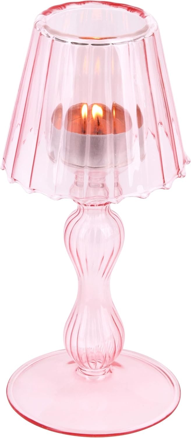 Gurfuy Pink Glass Votive Candle Holders - Glass Hurricane Candleholders Crystal Decorative Lamp Shaped Candle Stand for Table Wedding Dinning Centerpieces Party Supplies Festival Windowsill (Pink)