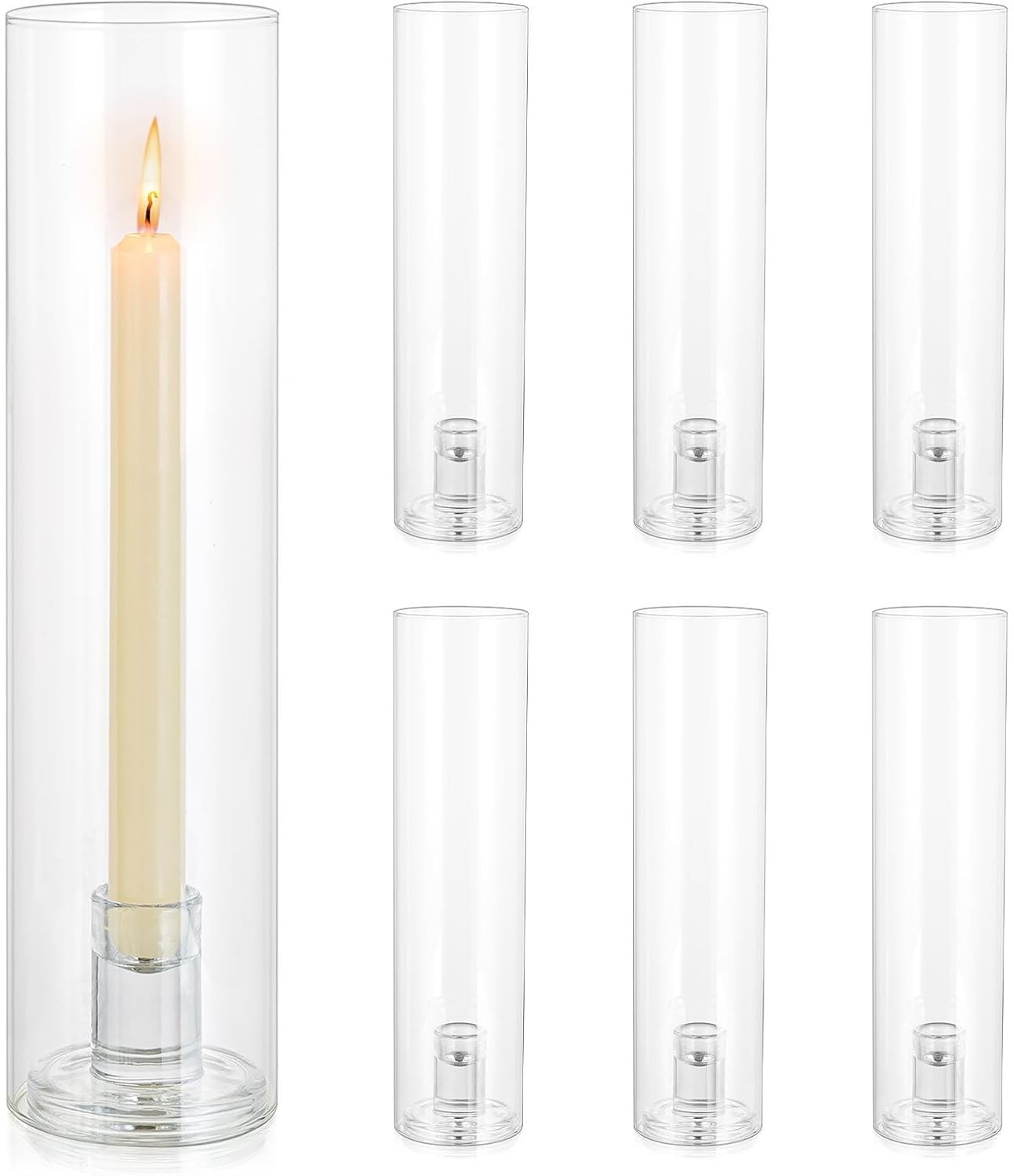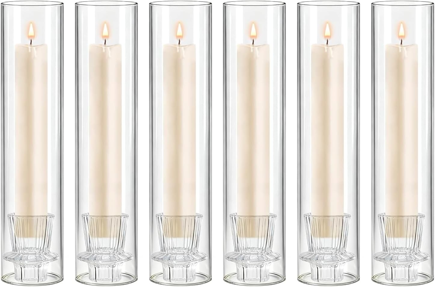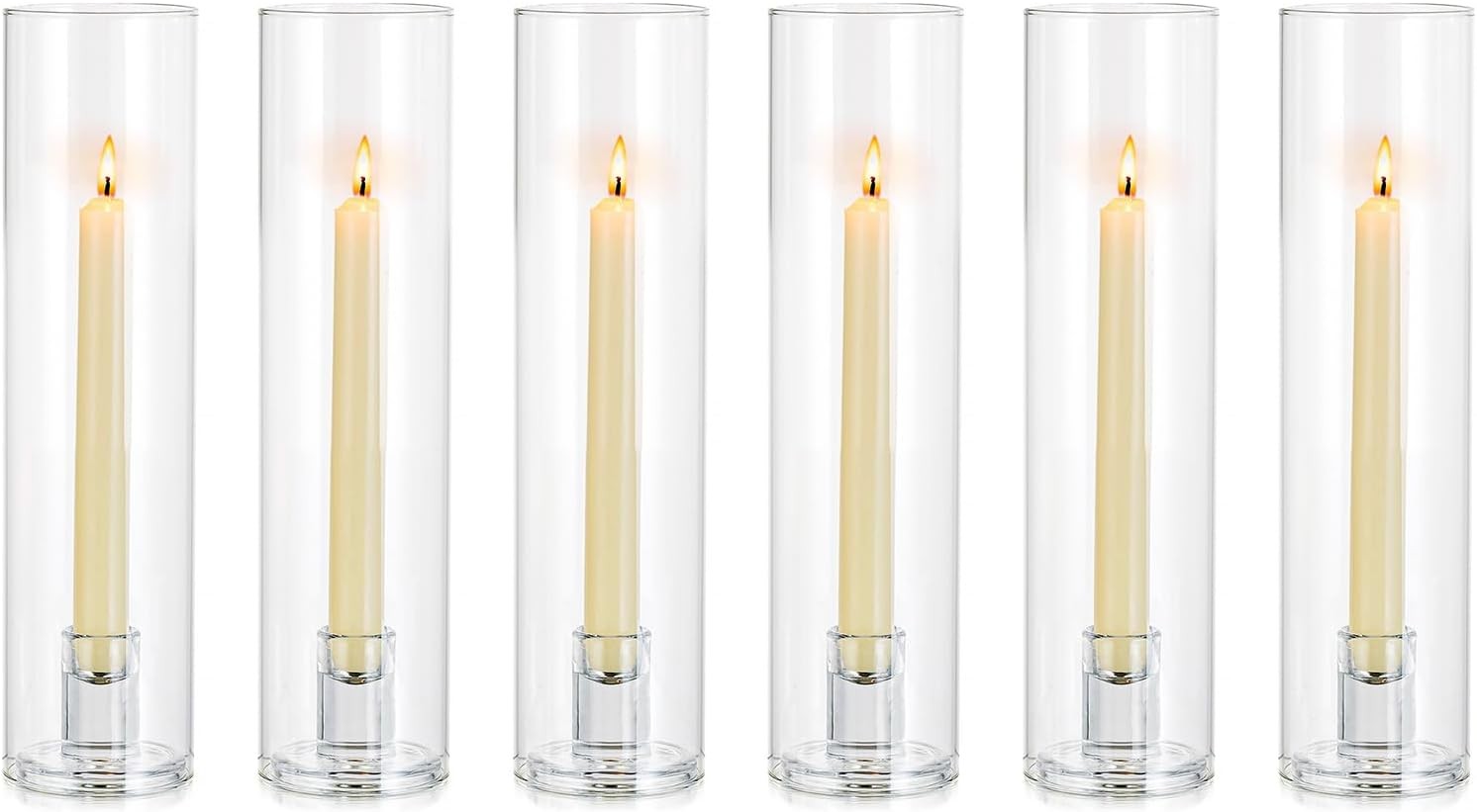 6pcs Hurricane Glass Candle Holder, 12" Tall Clear Glass Candlestick Holders Ta