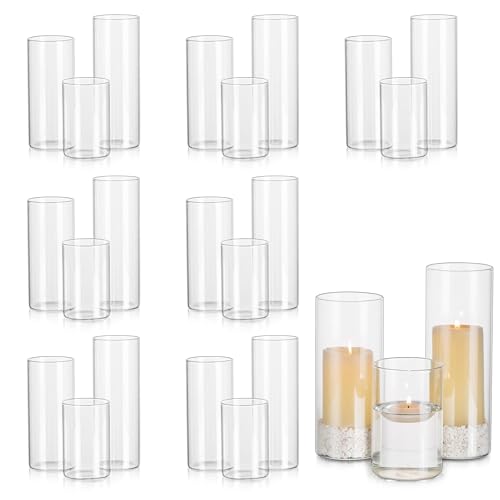 Glasseam Candles Holders Set, 24 Candle Holders Glass Vases for Decor Xmas Halloween, Dinner Candle Holder for Table Centerpiece, Cylinder Hurricane Candle Holders for Pillar Candles Votive Tea Light