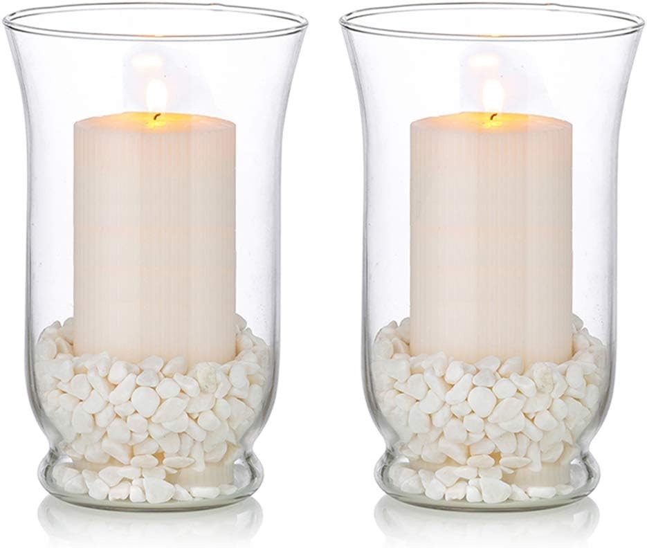 Hewory Hurricane Glass Candle Holders: Set of 2 Clear Candle Sticks Holder for