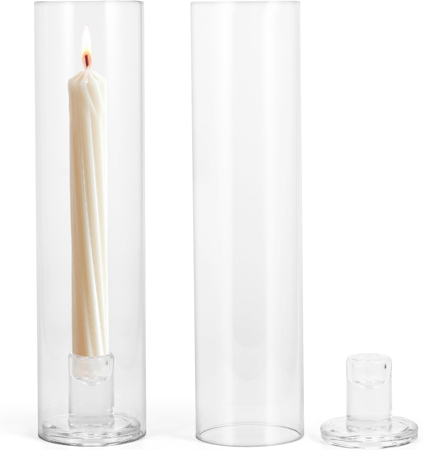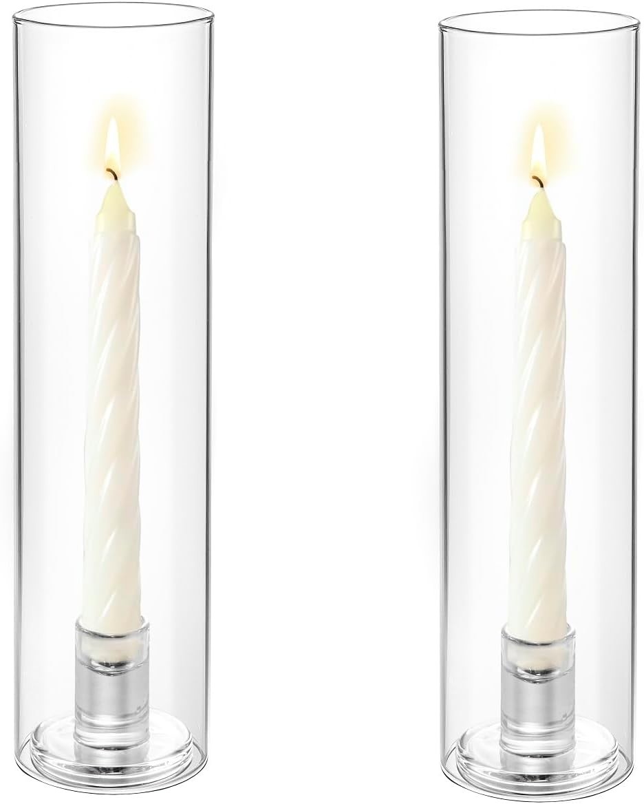 Set Of 2 Glass Taper Candle Holder, Glass Hurricane Candle Holders with Windpro