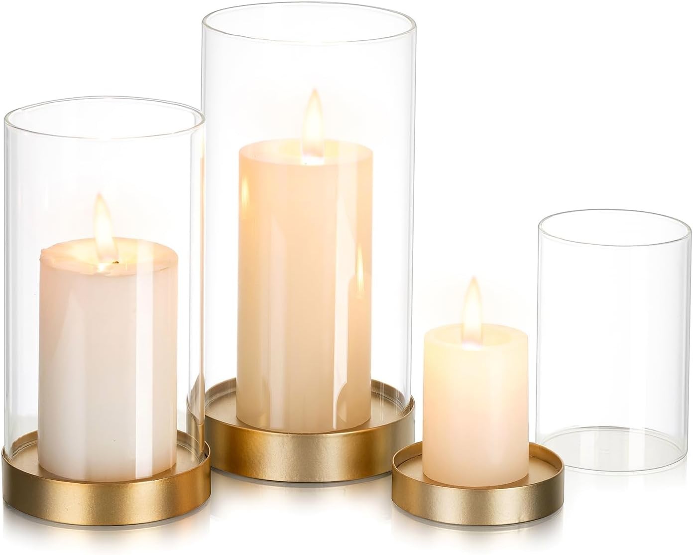 Romadedi Glass Hurricane Candle Holder: 3Pcs Pillar Cylinder Candle Holders Flo