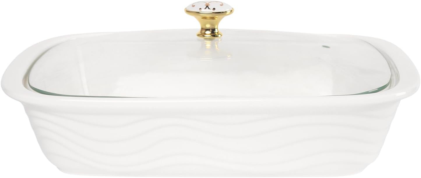 1 Piece Glass Casserole Dish Rectangular Baker with Lid White