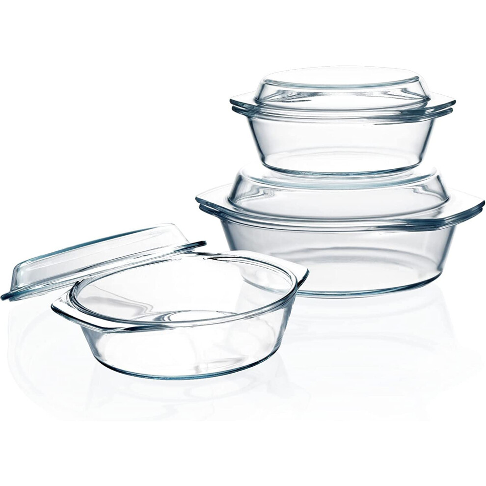 Oven Safe Glass Casserole Dish Set Lid 2.4L Round Cookware for Even Cooking