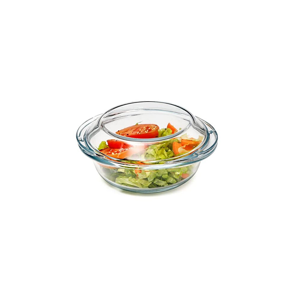 840ml Round Glass Casserole Dish with Lid, Oven Microwave Dishwasher Safe Bakeware
