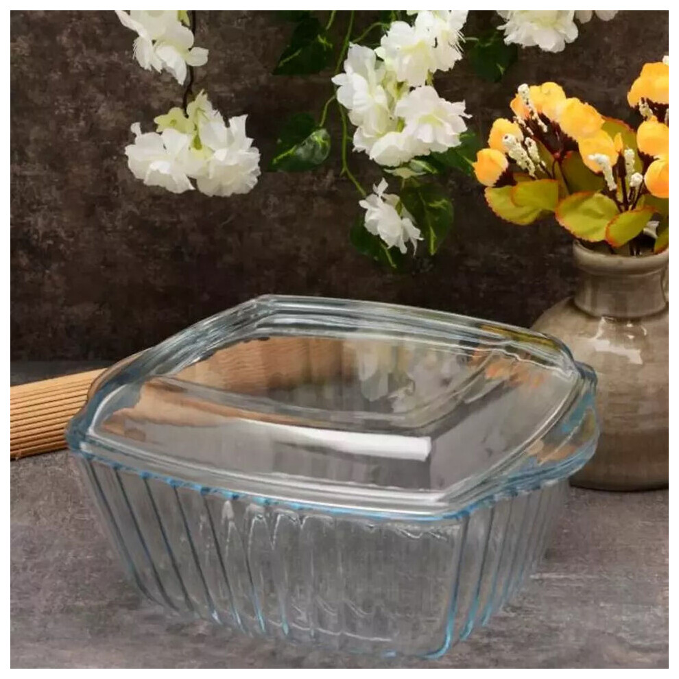 (2600ml) Glass Casserole Oven Roasting Dish Lid Bakeware Microwave Safe