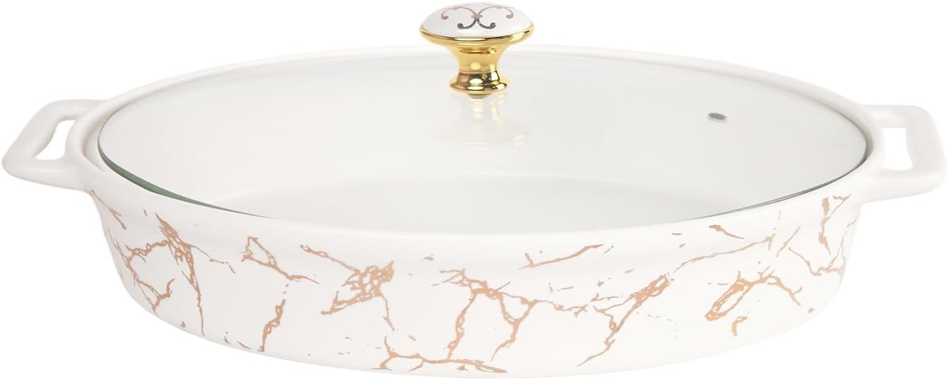 Porcelain Oval Casserole Baking Dish with Glass Lid,1300 ML Serving Soup Tureen