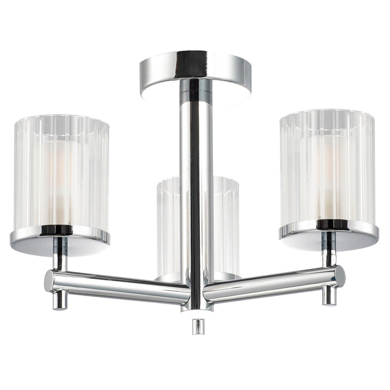 Designer Chrome IP44 Rated Bathroom Ceiling Light with Ribbed Glass Shades