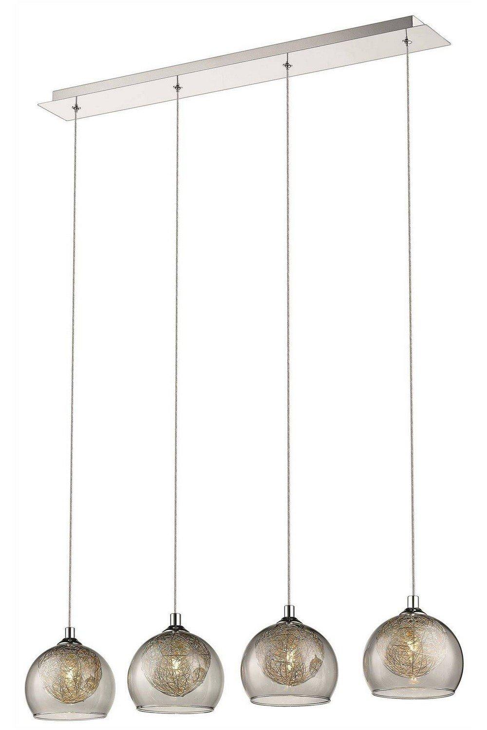 Spring 4 Light Ceiling Pendant Bar Chrome Smoked grey with Glass Shades G9