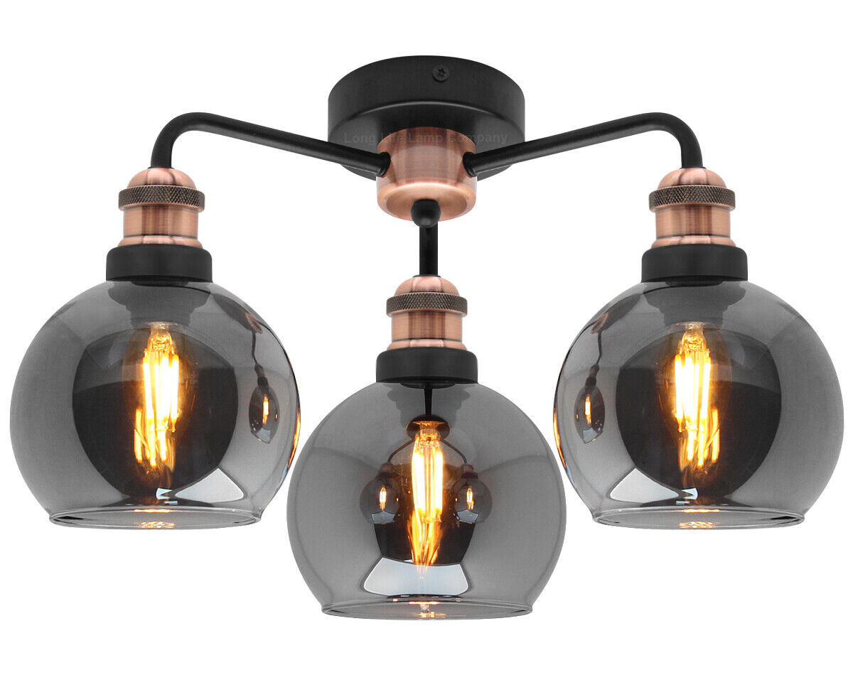 Modern Vintage Grey Glass Ceiling Light 3 Globe Shades Round Chandelier M0232