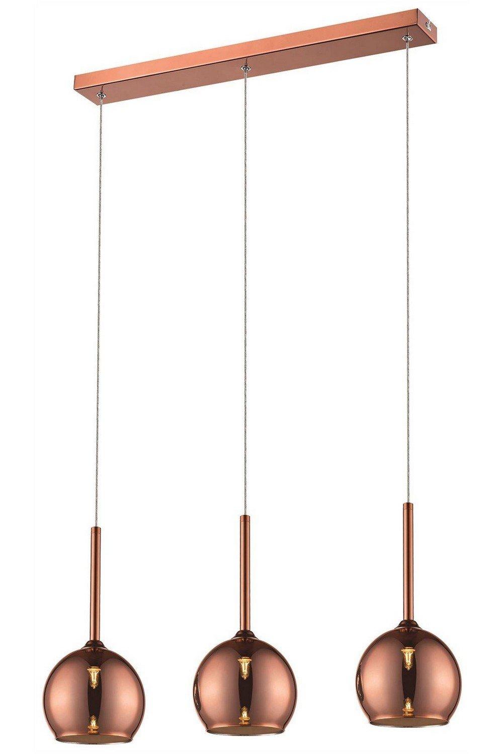 Spring 3 Light Ceiling Pendant Bar Copper with Glass Shades G9