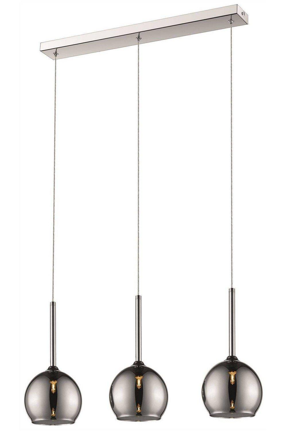 Spring 3 Light Ceiling Pendant Bar Chrome with Glass Shades G9