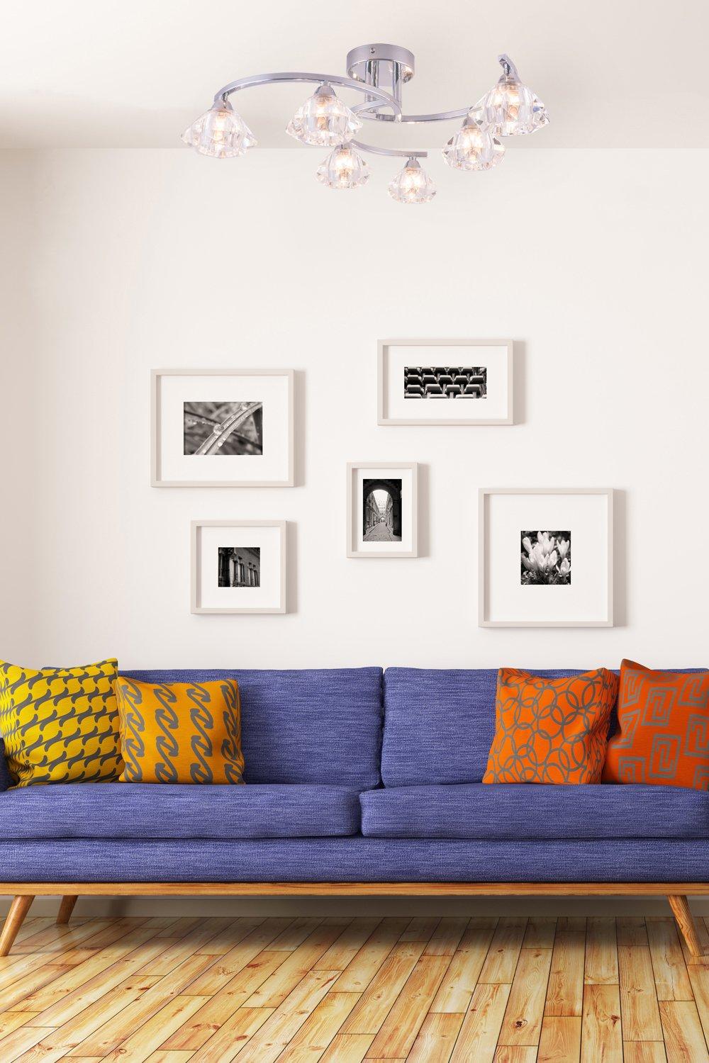 Polished Chrome Semi Flush Ceiling Light & Confetti Glass Shades Multi Arm Lamp