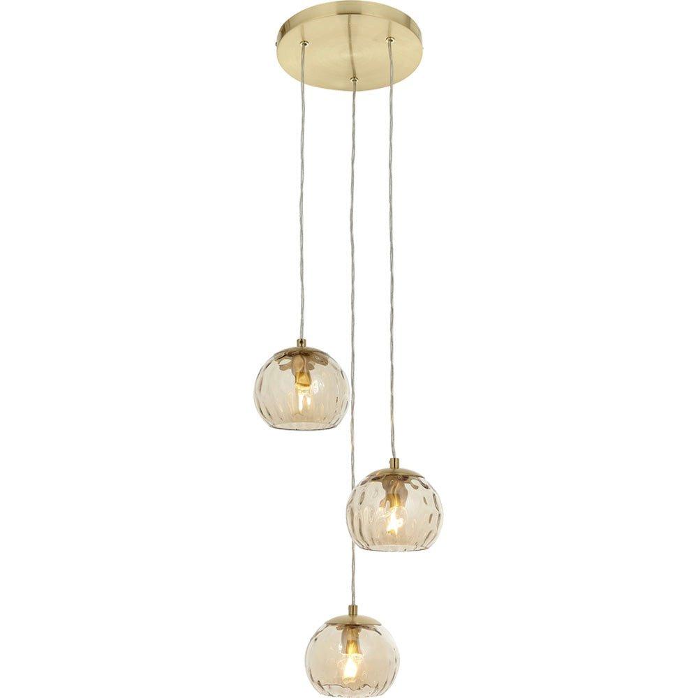 Satin Brass 3 Light Ceiling Pendant Fitting & Campagne Dimpled Glass Shades