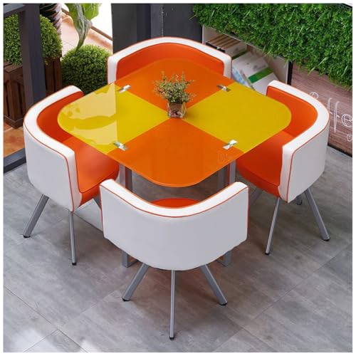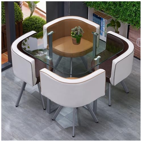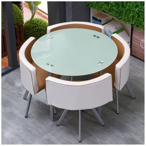 Round/Square Dining Table Set with Chairs, Tempered Glass Tables and Chairs 1 Table 4 Chairs for Kitchen Bar Balcony Bedroom Library Billiard Hall Office,41