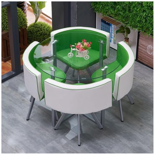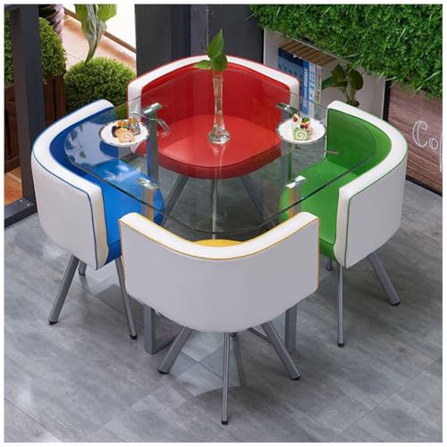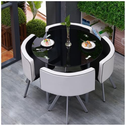 Round/Square Dining Table Set with Chairs, Tempered Glass Tables and Chairs 1 Table 4 Chairs for Kitchen Bar Balcony Bedroom Library Billiard Hall Office,6
