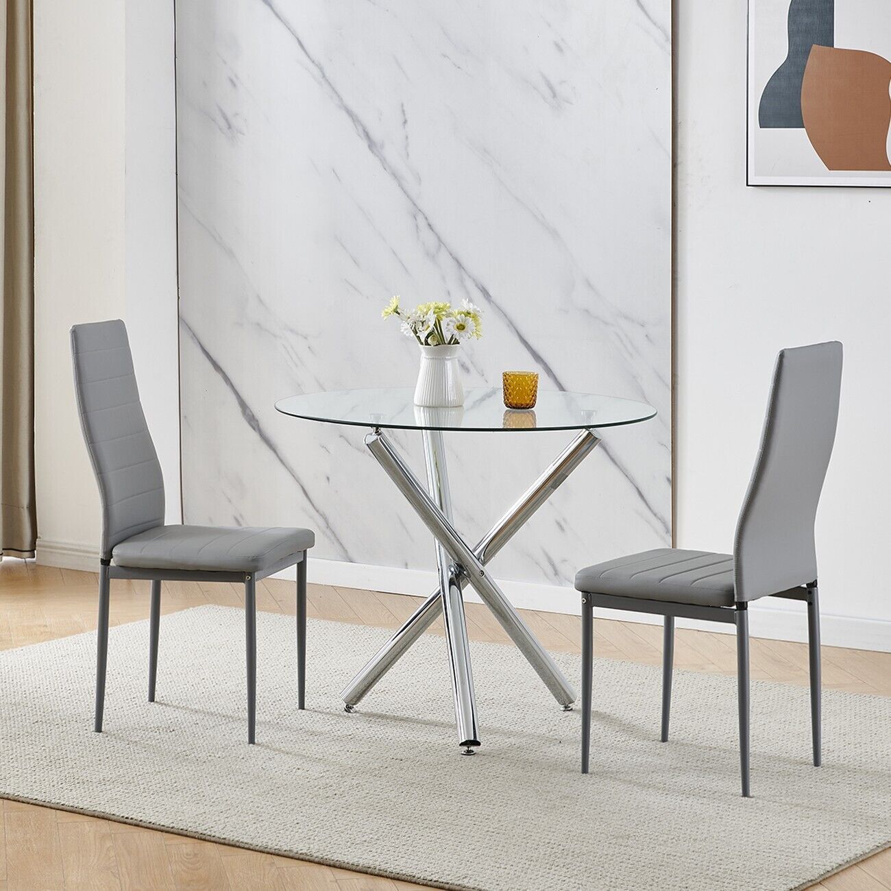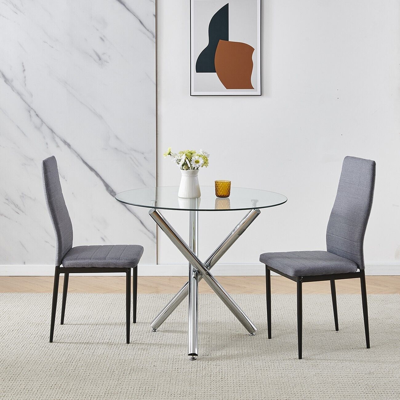 90x90 Round Table and Chairs Round Glass Table with Chairs Dining Table Set of 2
