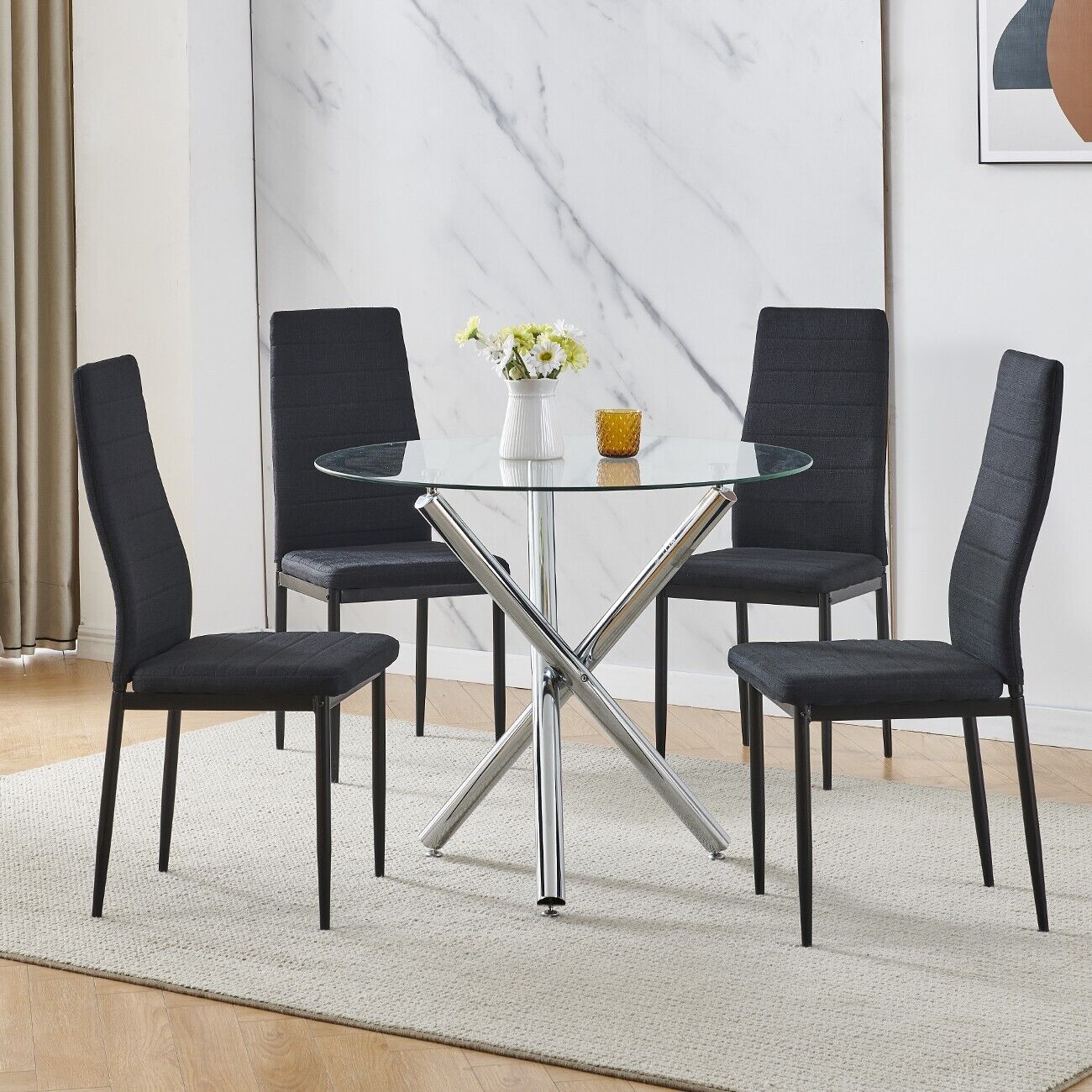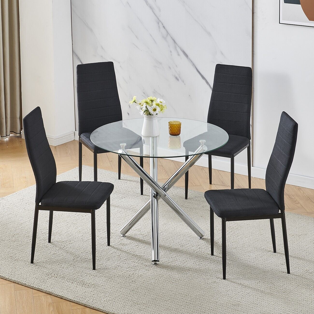 90x90 Round Table and Chairs Round Glass Table with Chairs Dining Table Set of 4