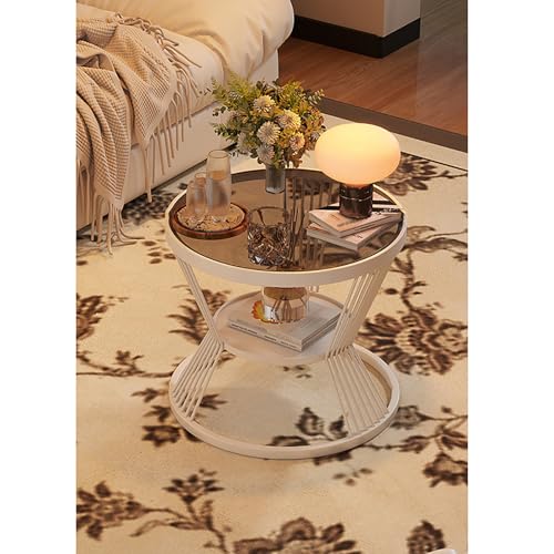 2-tier Glass Coffee Table for Living Room, Modern Round Center Table with Tempered Glass Top & Lower Shelf, Circular Cocktail Table Accent Furniture for Apartment, Home(45cm/18", White + Brown)