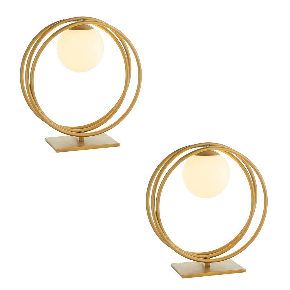 2 PACK Brushed Gold Table Lamp - Gloss Opal Glass Shade - Circular Hoop Design