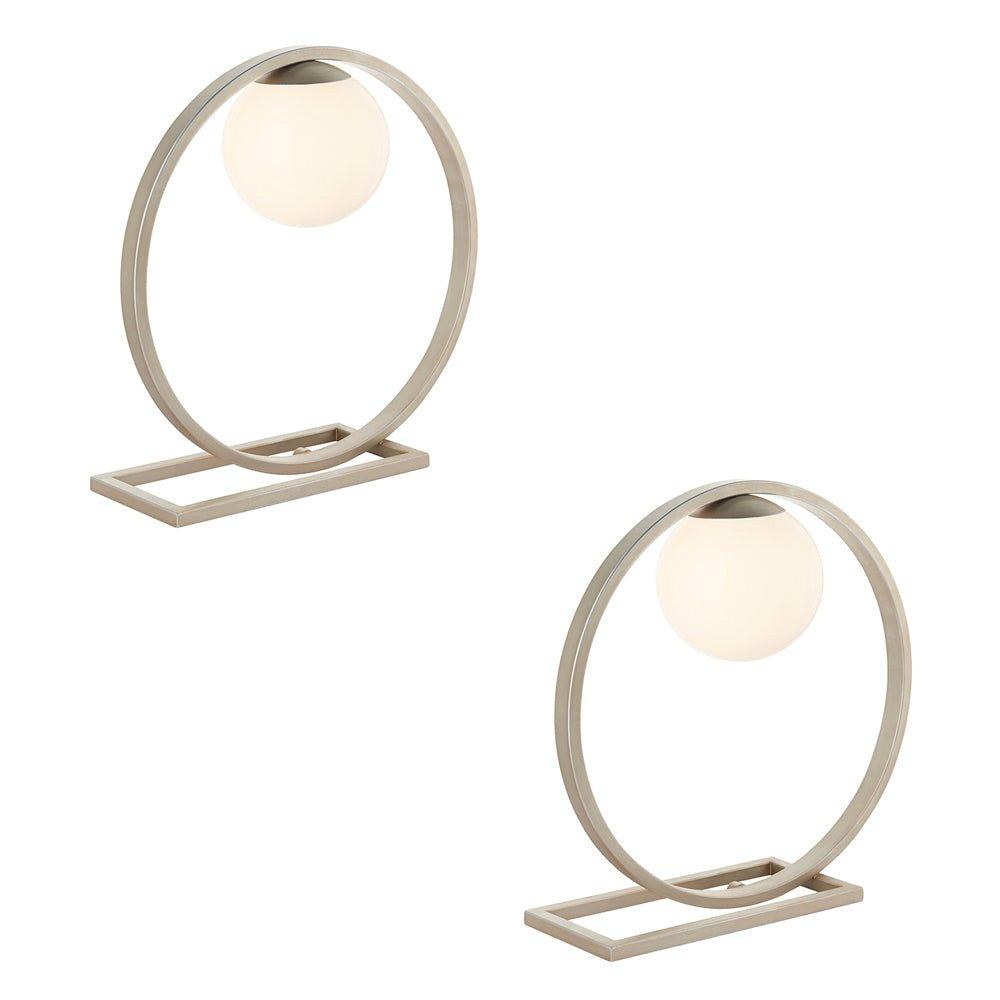 2 PACK Brushed Silver Table Lamp - Gloss Opal Glass Shade - Circular Hoop Design