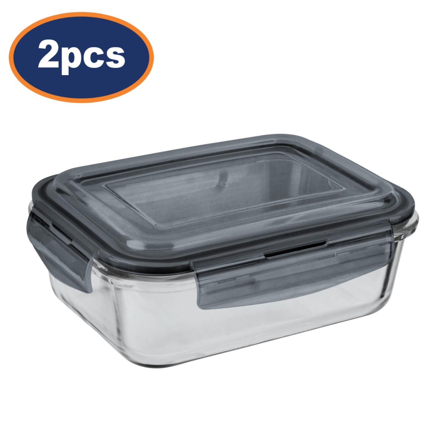 Glass Food Storage Container Plastic Lid 620ml Medium Clip Lock Oven Safe 2Pcs