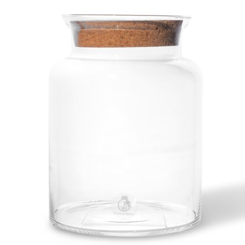 Glass Terrarium Container with Cork Lid, 24 cm High x 26 cm Wide, Hand Blown Clear Glass, Terrarium Jar (with Standard Lid, Glass Only)