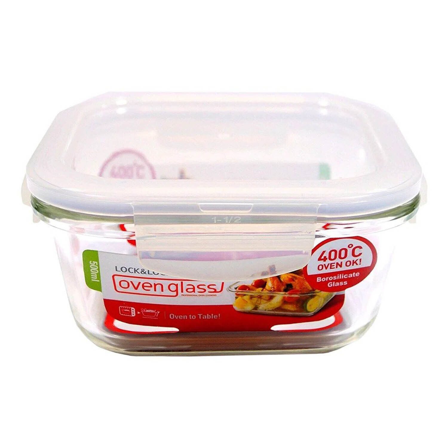 Lock & Lock Oven Glass Square Container Clear Airtight Lid Food Storage 500ml