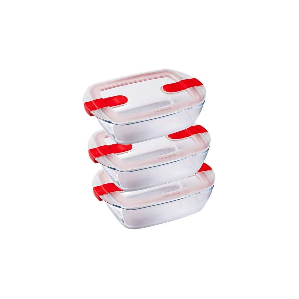 Pyrex Cook and Heat Cook & Heat Set of 3 Rectangular Glass Food Containers 1.1 L with Airtight Lid for Microwaves