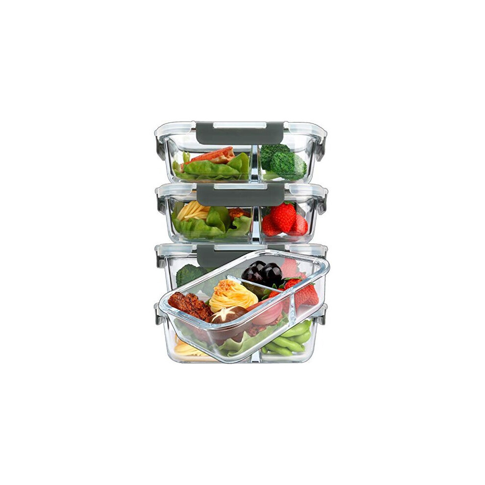 MCIRCO Glass Meal Prep Containers 2 Compartment Glass Lunch Containers Glass Food Storage Containers