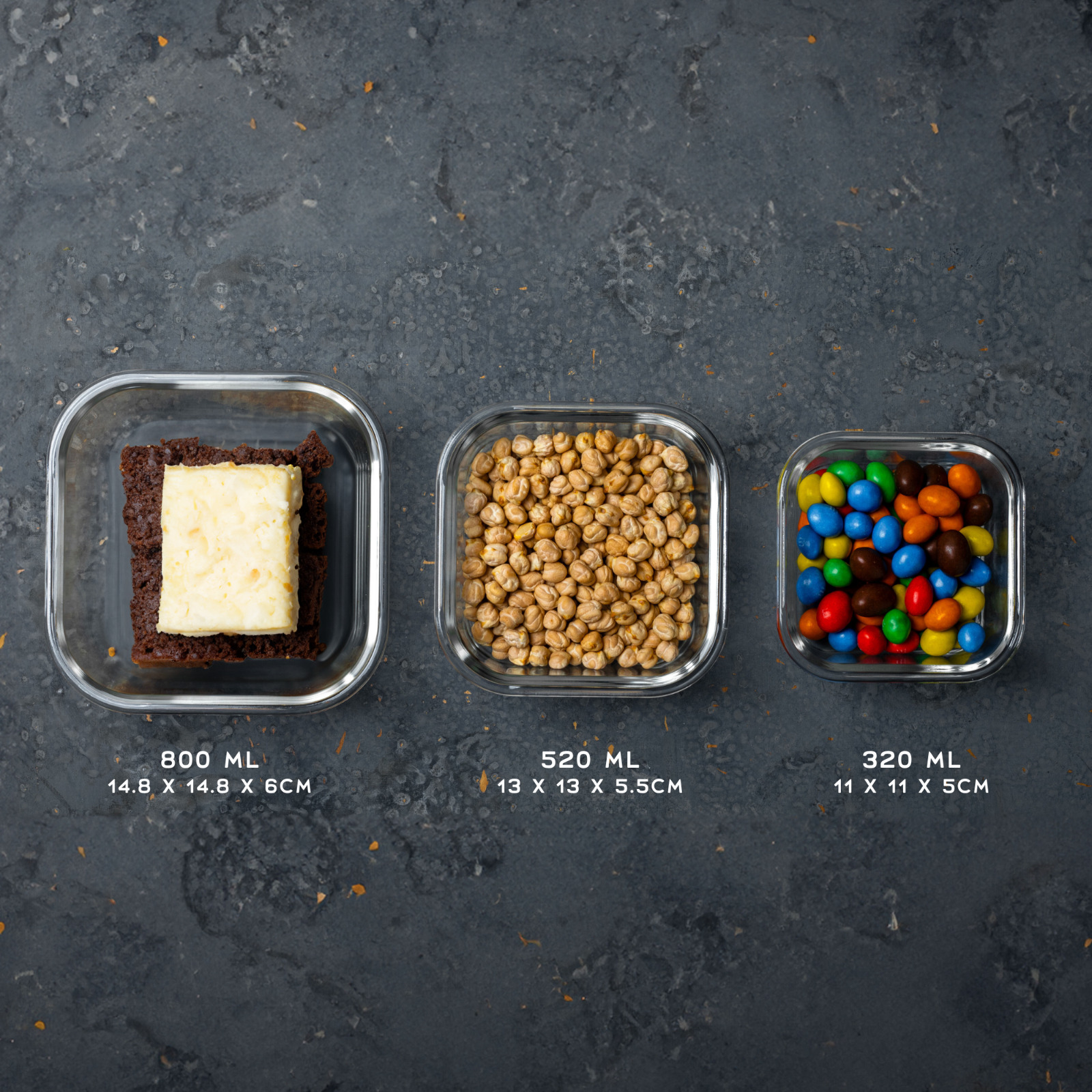 Igluu Square Airtight Glass Food Containers Storage Meal Prep BPA Free 3 Sizes