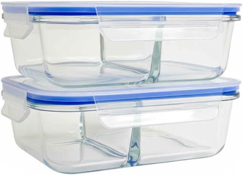 Glass Food Containers with Lids – 2 Pack, 2-Compartment Meal Prep Containers,