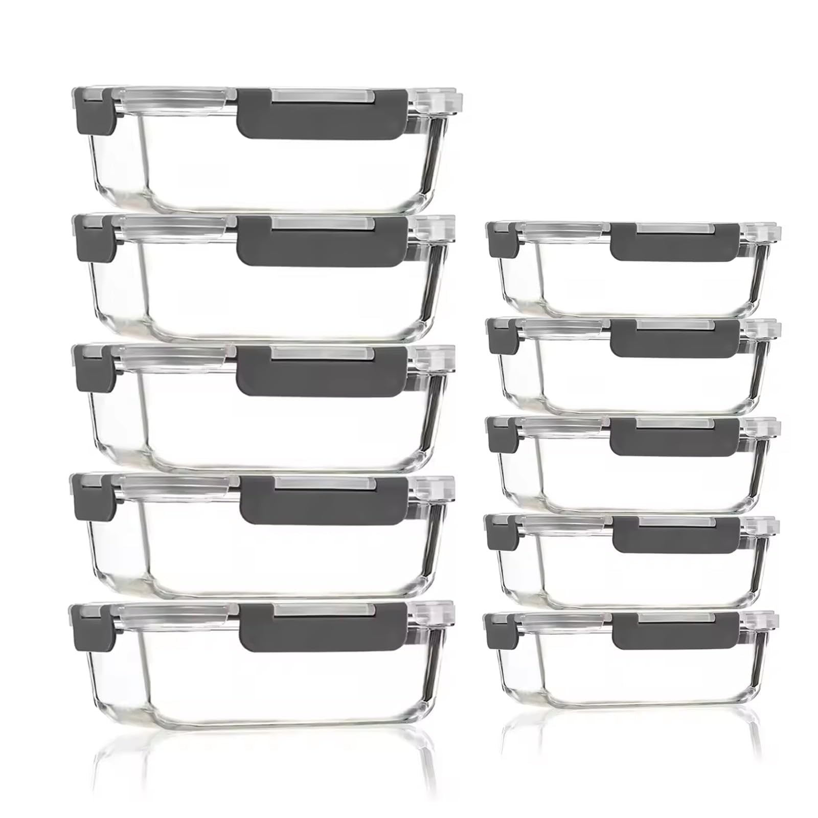 10 Glass Food Containers Rectangle Airtight Meal Prep Lunch Boxes Microwave Safe
