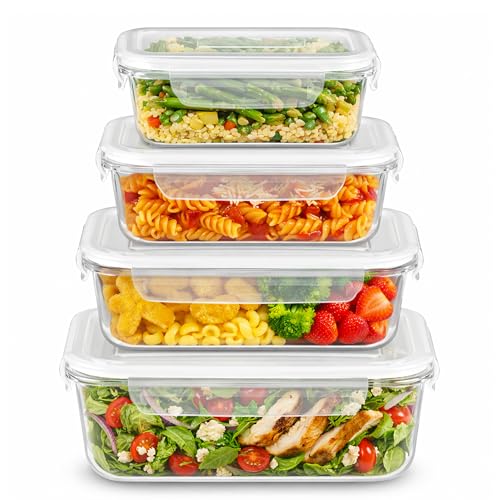 Hcrvvi 8pcs 1040 ML Food Containers With Lids, BPA Free - Glass Containers With Lids, Meal Prep Containers, Airtight & Leakproof Glass Food Containers