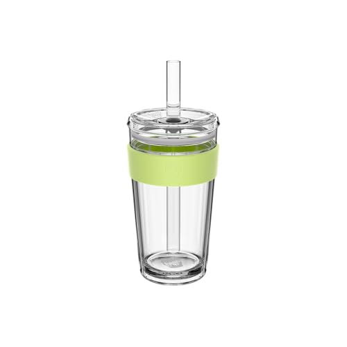 KeepCup Cold Cup - Longplay Double Wall Glass Ice Coffee Tumbler with Lid and Straw - 16oz (454ml) - Chartreuse Green
