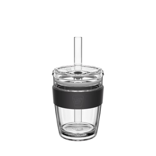 KeepCup Cold Cup - Longplay Double Wall Glass Ice Coffee Tumbler with Lid and Straw - 12oz (340ml) - Black