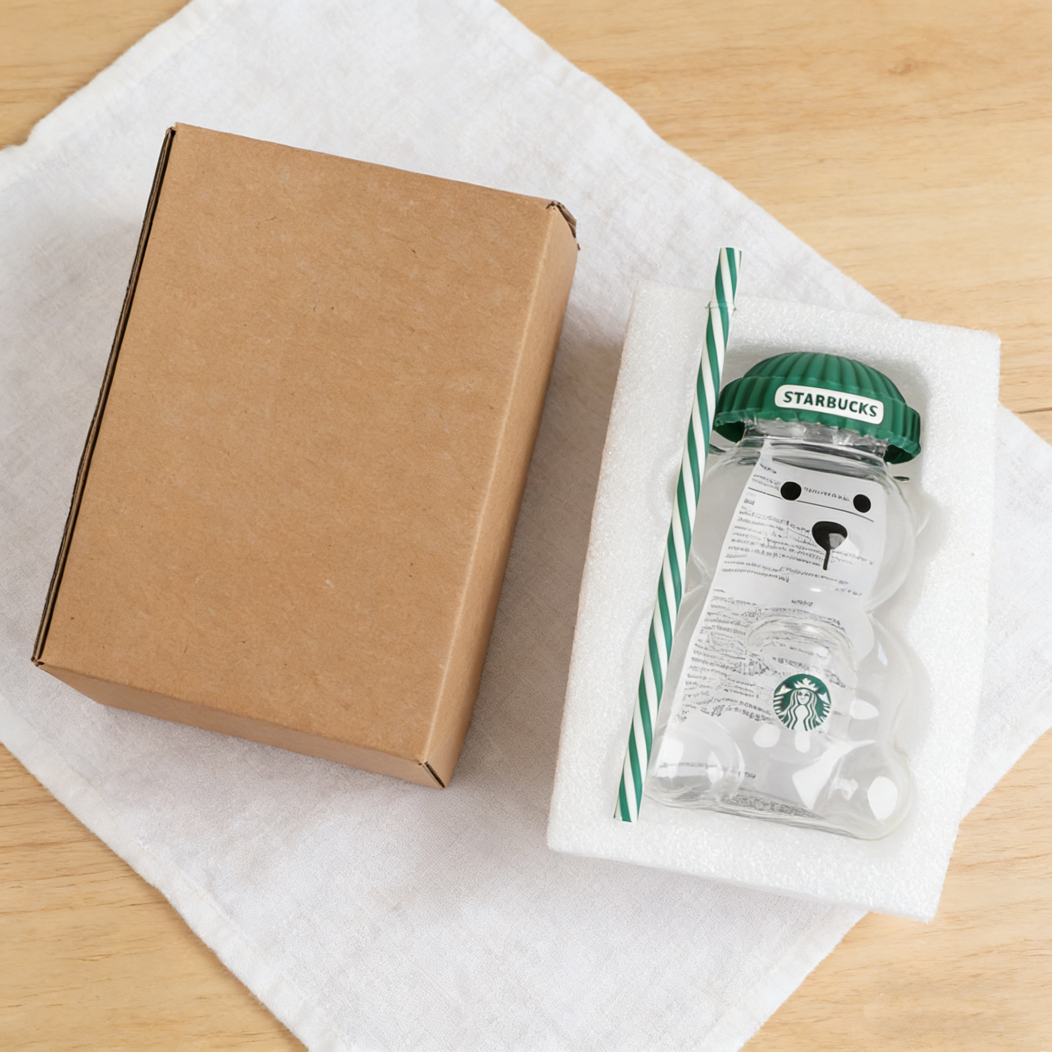 20oz Starbucks Bearista Bear Clear Glass Cup Green Lid Straw Cold Water Café Gift