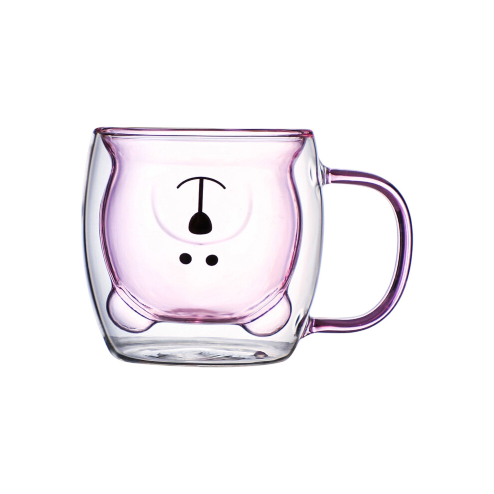 (1pcs)Bear Cup 8oz Glass Cup with Lid and Straw Bear Glass-Pink