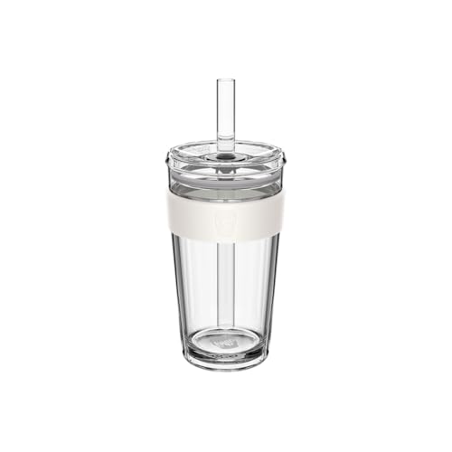 KeepCup Cold Cup - Longplay Double Wall Glass Ice Coffee Tumbler with Lid and Straw - 16oz (454ml) - Chalk