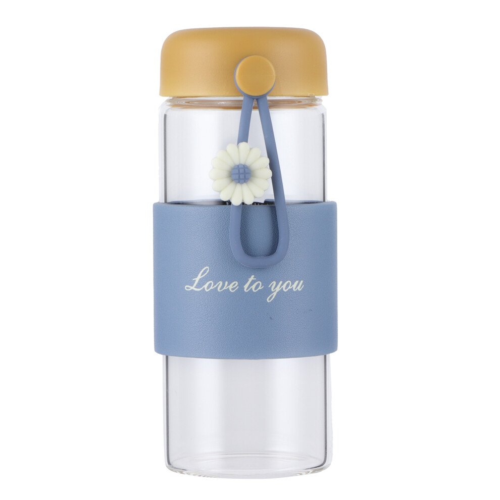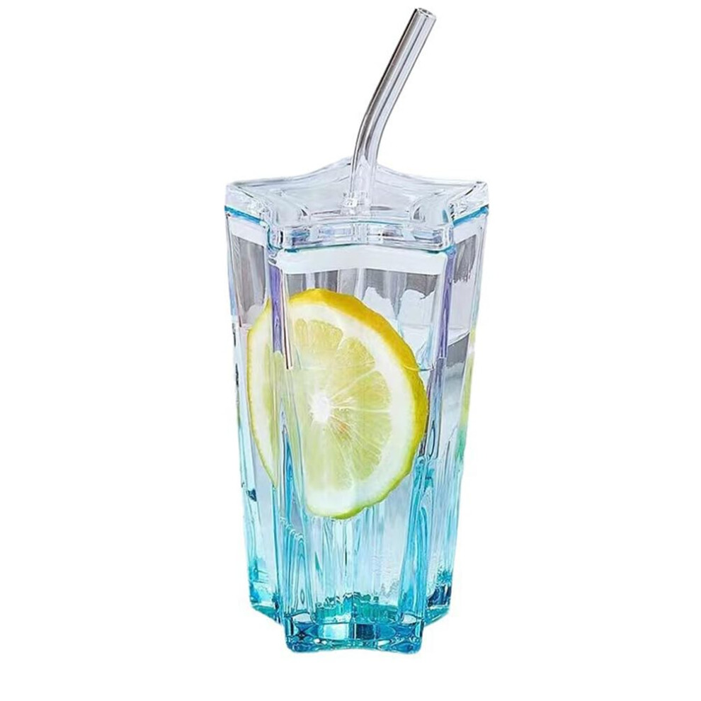 Blue Star Shaped Glass Cup with Lid and Reusable Straw, 300ml Tumbler for Cold Drinks