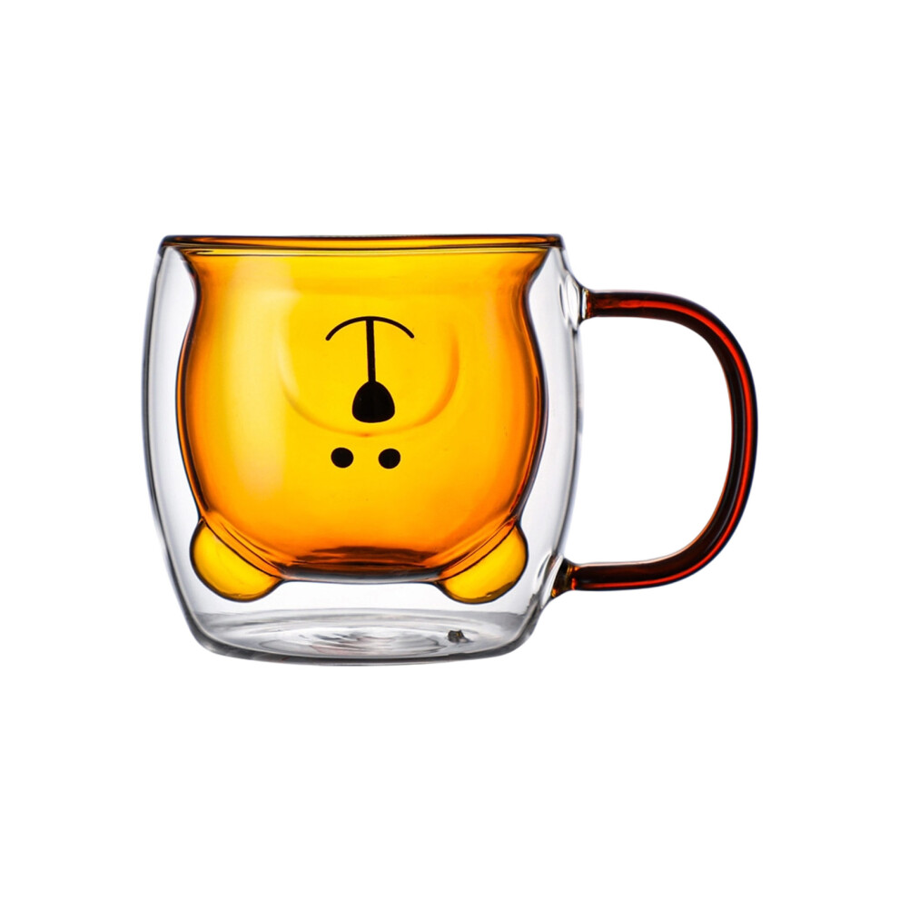 (1pcs)Bear Cup 8oz Glass Cup with Lid and Straw Bear-Yellow