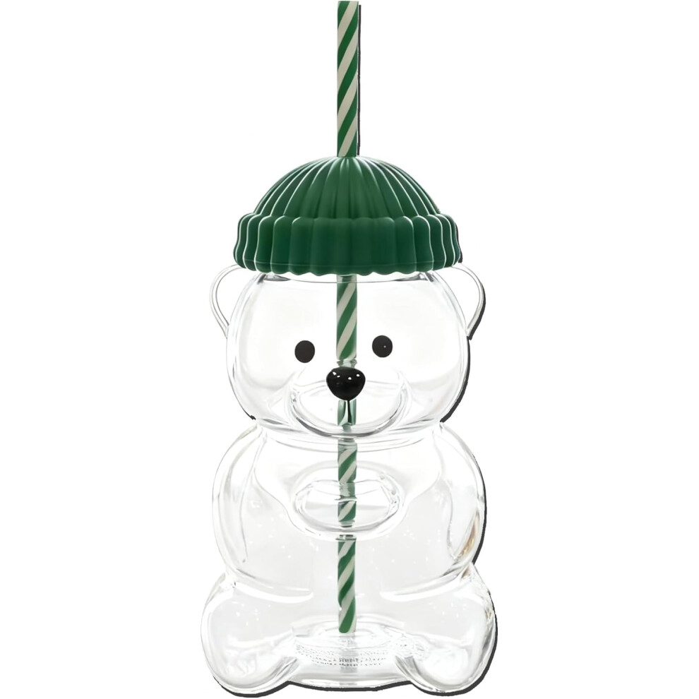 (1pcs)Bear Cup 8oz Glass Cup with Lid and Straw Bear-Green